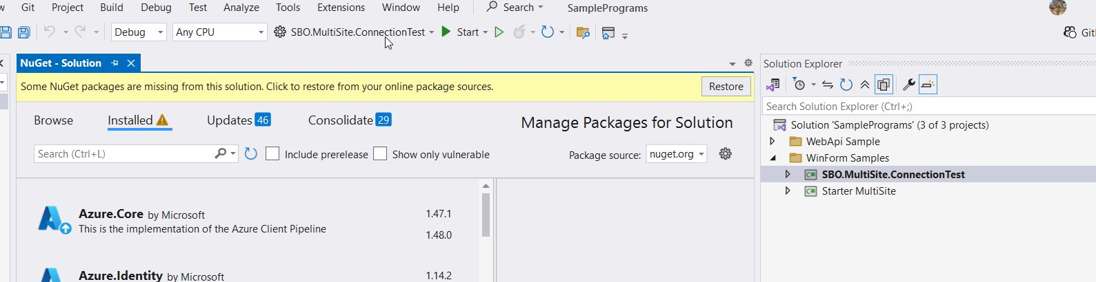 in the class add the following static method (you will need to modify/edit for your requirements) this is a sample for an idea only. Again below is a sample only and needs to be modified to fit YOUR code requirements. This will typically make sure that no matter what version of the sbo objects .dll's nuget package you use, the code will use the .dll as found in the runtime code of where you have placed all of the .dll's required. (not only for your project use, but sbo objects as well)
