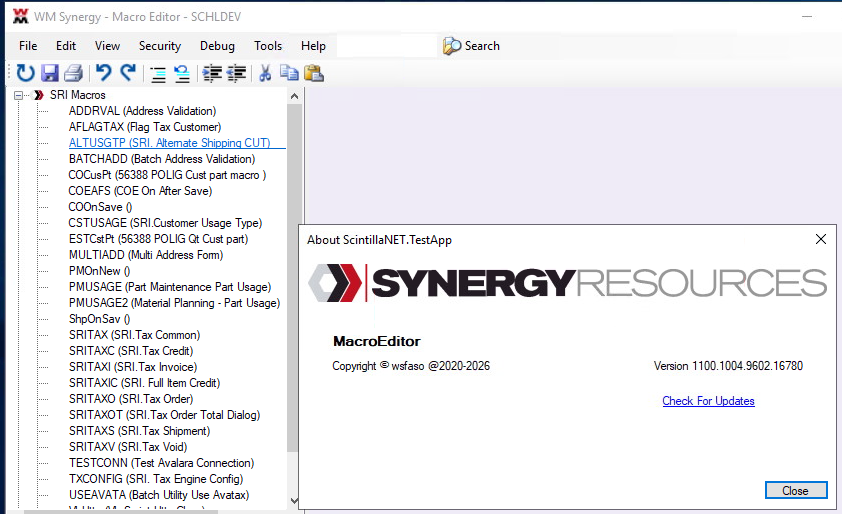Macro Editor receives periodic updates to fix issues or add new enhancements to the product. It is important to periodically check for these updates by using: