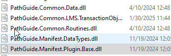 Copy the following files from C:\Program Files\PathTech\Manifest\0\bin, and replace any similar files in the LMS Plugin file folder. This will ensure that all current PathGuide libraries are available for the lms plugin to reference. (Please note that if Pathguide does any updates to their system, the end uses should be aware that the updated pathguide libraries need to be copied to the lms plugin runtime directory.)