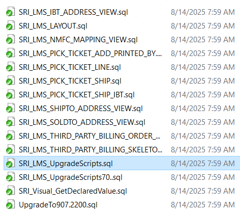 - At the time of this update, it is unsure from which version of LMS the SRI_LMS_UpgradeScripts*.sql apply to.