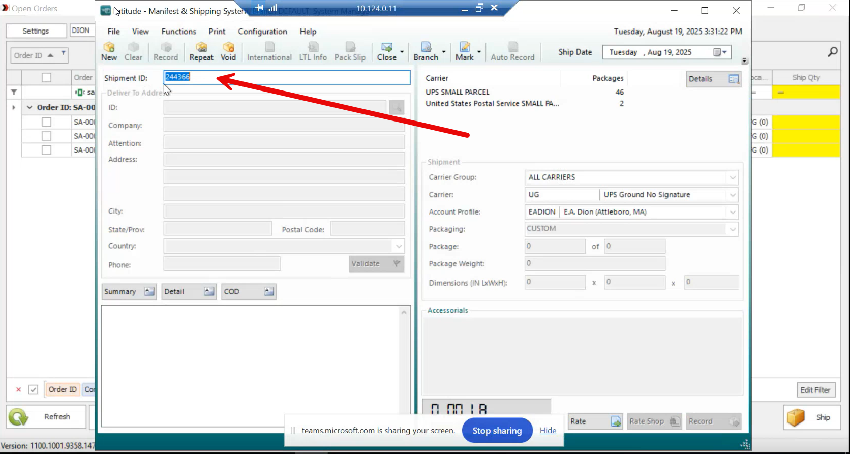 Shipping an item from this form will auto populate the shipper id into PathGuide (this must be running on the same client machine)