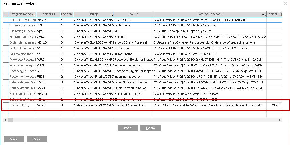 There are a few files that are required to be copied over to each Visual client machine. These files will enable the ability to process consolidated shipments and auto populate LMS after each Visual shipment.