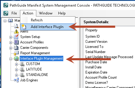 Select interface Plugin Management and then Action → Add Interface Plugin