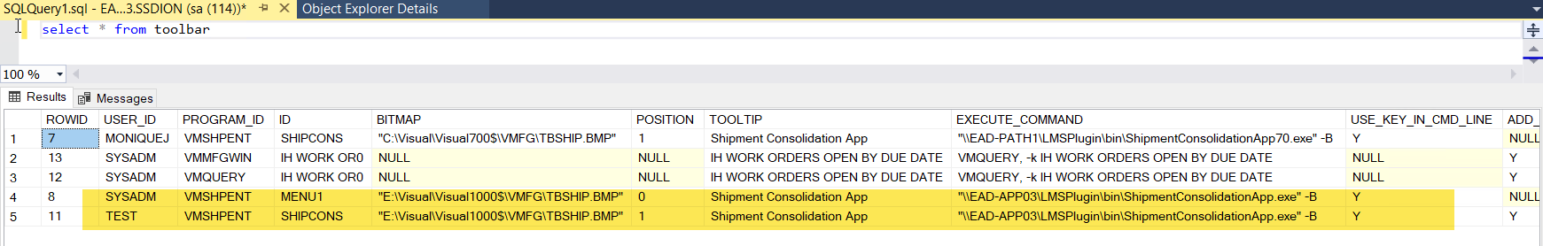 using ssms